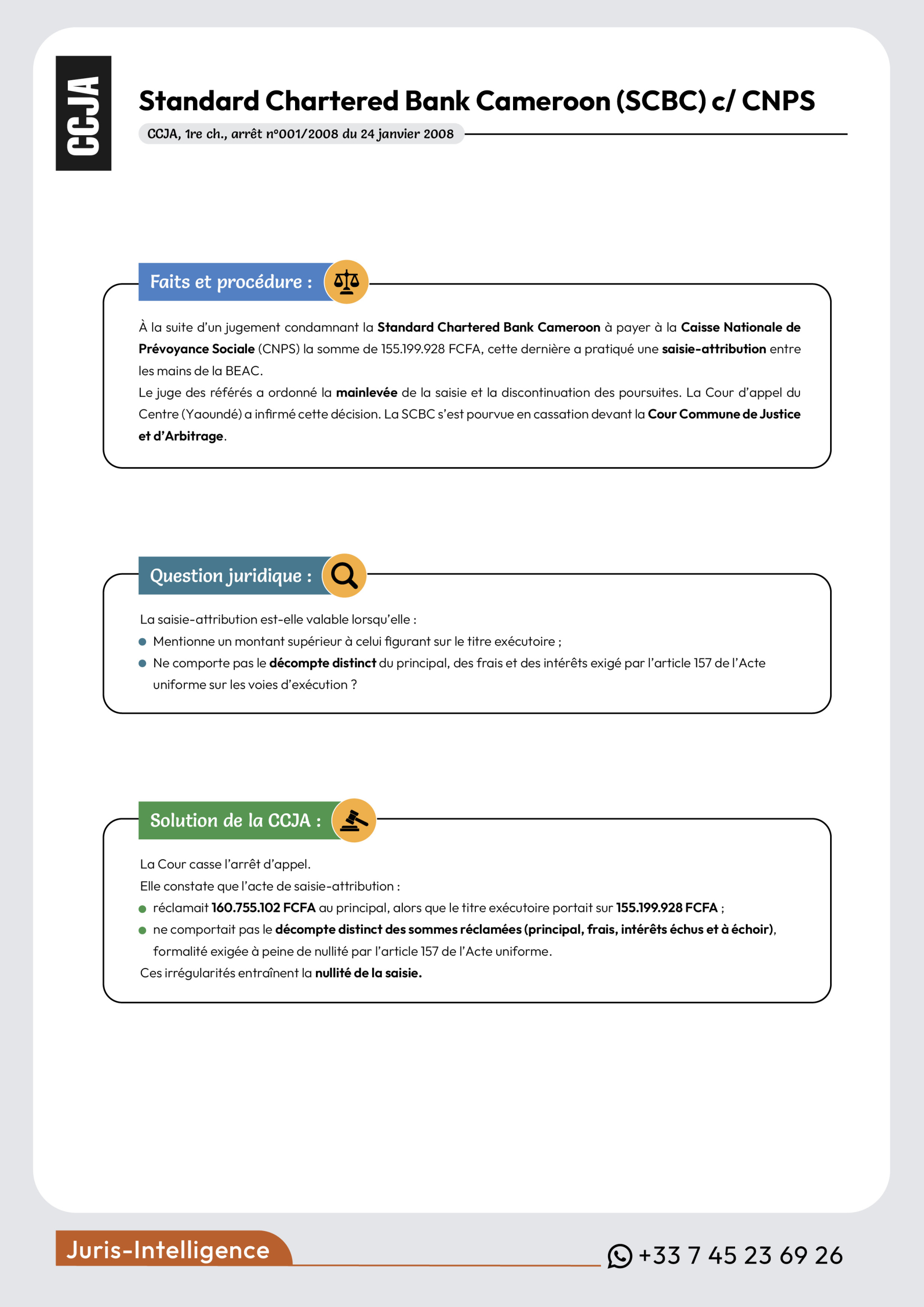Standard Chartered Bank Cameroon (SCBC) c/ CNPS